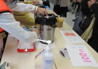 | 【メンバーさんのコメント】 「温かいコーヒーを飲んでいただきたくて、お客様のタイミングを見ながら淹れました。お昼休みには行列が出来る程の沢山の学生さんが来てくれました。気さくに話しかけてくれたり『美味しい』と言ってもらえて、とても楽しかったです! コーヒーもほぼ無くなって良かったです」 「沢山の方に来ていただけて用意していた紙コップがなくなるほど大盛況でした。コーヒーを飲んだ先生や学生の方々からおいしかったと言っていただけて嬉しかったです」 |